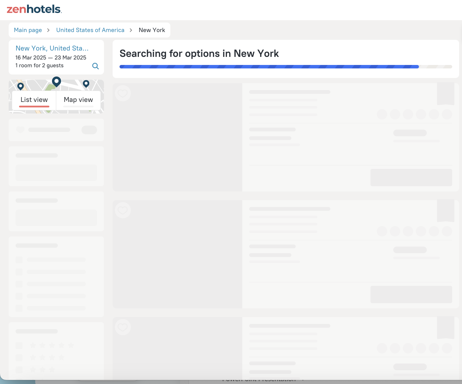 We click “Search,” and loading starts. How many DS products managed to work while we were looking for a hotel Here’s a little hint: we will return to ranking more than once because search is one of the largest components of ETG.