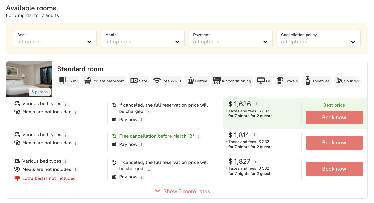 It also happened that a really bad hotel would pop up at the very top of the search results. Due to a large number of calculations, it is quite difficult to check how the models work in real-time. Similar to hotel and room photos, our Account Managers can periodically check that and make sure that a hotel participating in the Top Stays program appears at the top of the lists.